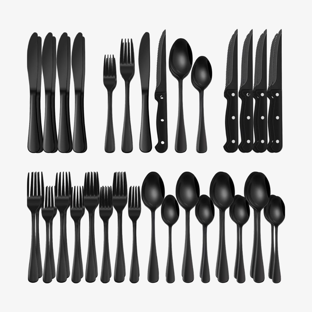24-Piece Black Silverware Set with Steak Knives