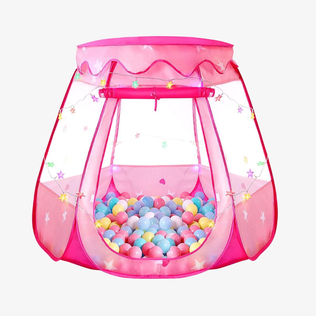 • [Comfortable and Safe Design]: Our toys for 1 2 3 year old girl has passed strict product tests and USA Toy Safety Guidelines. This 1 year old girl gift is a dreamlike playhouse, The princess tent features colorful LED star lights, mesh windows, removable sunroof, crawling door with roller curtain, and anti-scratch-designed velcro. Which is very for kids’ use and improves children’s imagination, creativity, practical ability. (Note: balls not included. We recommend 100+ ball pit balls.)